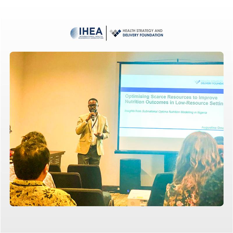 At the recently concluded International Health Economics Association (iHEA) World Congress 2025 in Bali, Indonesia, Augustine Aghogho Omodieke, Health Financing Team Lead at HSDF, delivered a powerful presentation on the outcomes of an optimization modeling study conducted across four Nigerian states.